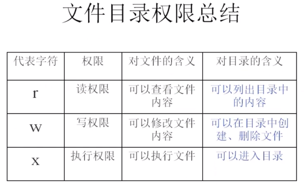 - -rw-r--r-- 开头标识文件类型,-二进制文件 d目录 l软链接文件,read,write,execute