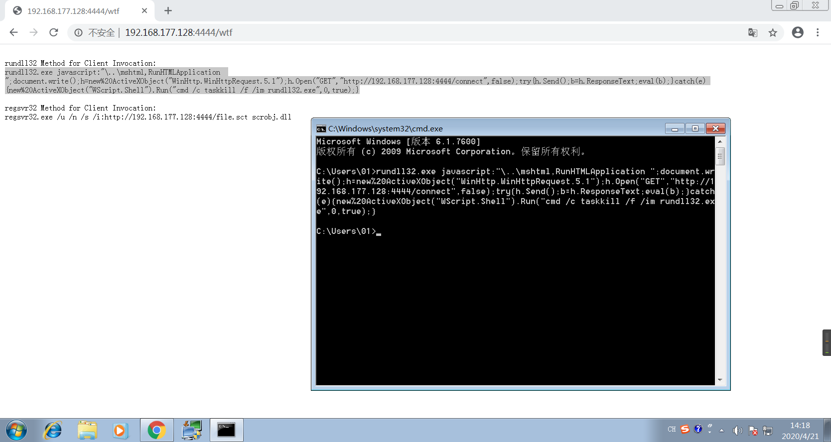 - 使用客户端浏览器访问以上IP和端口,以获得执行命令