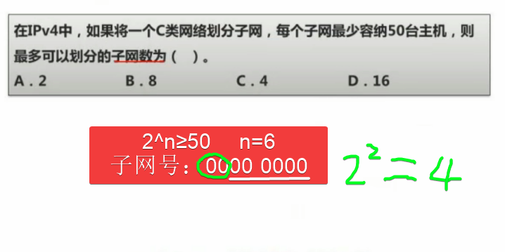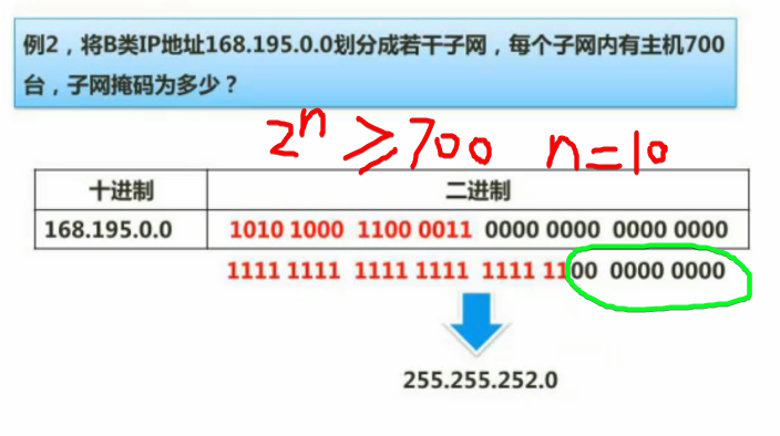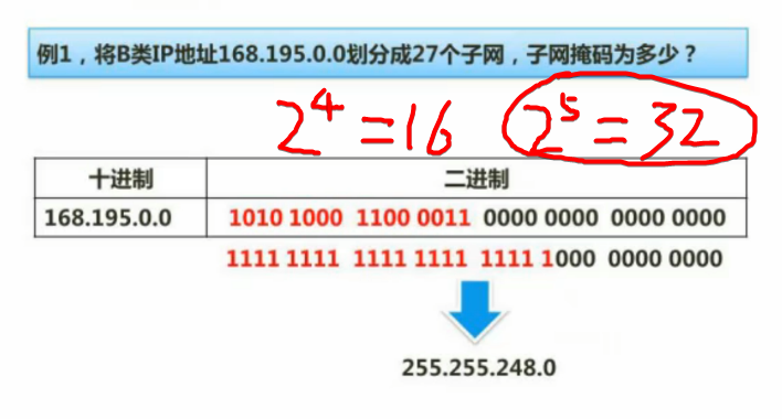 - 将IP地址与子网掩码的二进制进行“与”运算即可获得网络地址